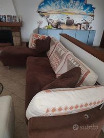 divano angolare design moderno 3 metri x 90 altezza 85 ottimo stato ,colore marrone tessuto completamente sfoderabile marrone con cuscini color panna