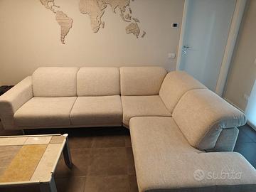 Vendo per cambio modello, divano in stoffa nocciola chiaro e piedini in acciaio lucido in ottime condizioni. Marca "Nicoletti divani Roma", dimensioni m. 2,70 x 2,10 e profondo 1,00 m., acquistato nel 2021. Ritiro solo presso mio appartamento (piano terra) a cura dell'acquirente.