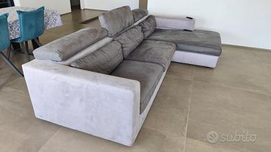 Divano angolare composto da due parti Dimensioni tot. 310 x 180 3 posti a sedere + chaise longue Schienale regolabile 80/95 cm Interamente sfoderabile e lavabile. Tessuto molto resistente. Grigio chiaro / grigio scuro Da ritirare sul posto
