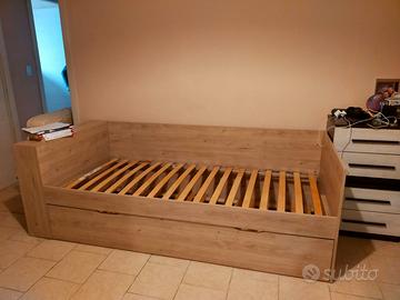 Vendo divano angolare rosso completamente sfoderabile 100€, letto singolo con doghe 60€ e letto singolo con cassetto con altro letto 80€.