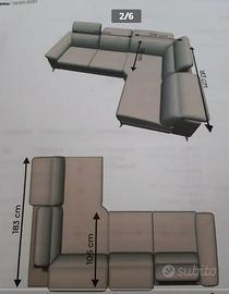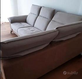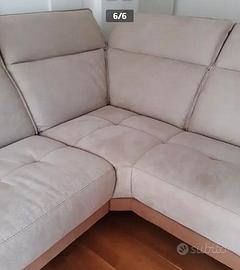 Vendo divano angolare (come nuovo, in perfette condizioni) della Dondi Salotti consegnato il 27/09/22, di colore tortora e miele con piedini di appoggio in titanio di color nero. Tessuto lavabile antimacchia effetto alcantara.