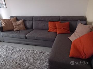 Vendita per rinnovo arredamento, ampio divano artigianale ad angolo colore grigio del 2020. Misure: lunghezza 2 metri e 98 cm, profondità 90 con profondità penisola 1,80.