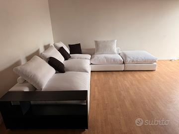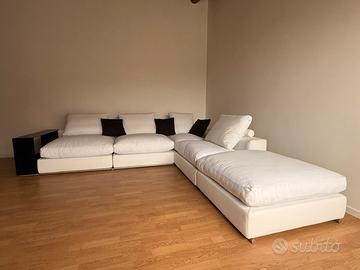 Divano ad angolo Flexform Groundpiece, usato ma in eccellente stato, bestseller della collezione flexform, in tessuto 100% di cotone bianco.