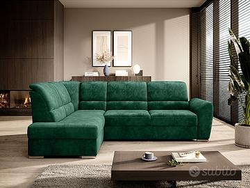 Il divano ad angolo Guatemala è una soluzione perfetta per le persone che apprezzano l’ordine e l’organizzazione. Aiuta a risparmiare spazio grazie al capiente box contenitore ed è dotato di funzione letto ribaltabile con una superficie di 205×125 cm. I suoi schienali regolabili, decorati con eleganti cuciture, renderanno anche le ore di relax un’esperienza comoda e confortevole e possono aiutarti a rilassarti comodamente mentre leggi un libro o guardi la TV. Elementi interessanti del modello Guatemala sono infine i piedini in legno alti 5 cm, così come il sedile imbottito con schiuma T30 che fornisce un’eccellente elasticità e alta densità. Divano angolare robustissimo e di qualità, dal peso di ben 131 Kg!