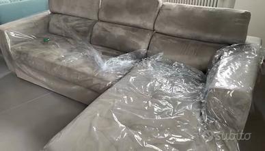 Vendo bellissimo divano angolare in microfibra effetto velluto grigio, con chaise longue e schienali alti super comodi.