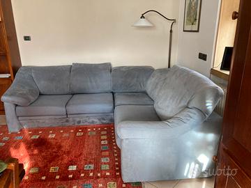 DIVANO ANGOLARE USATO MA MOLTO CURATO, IN MICROFIBRA, COLORE CELESTE, PER CAMBIO ARREDO, VENDO.