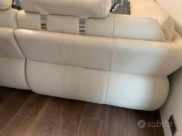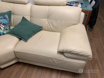Vendo divano in pelle ad angolo in pelle color avorio di fabbricazione artigianale dimensioni 300 cm per 230 con due poggiatesta ( spostabili a piacere).