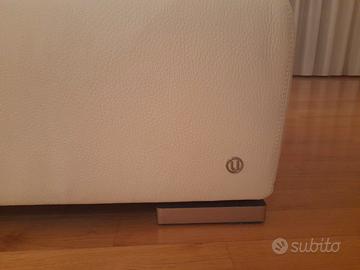Causa acquisto immobile semi arredato, vendo divano angolare in pelle Divani&Divani by Natuzzi in ottimo stato, color bianco, con 3 cuscini grandi in piuma d'oca color celeste chiaro (effetto jeans) correlati + 2 cuscini piccoli. Design moderno.