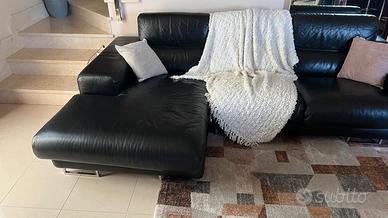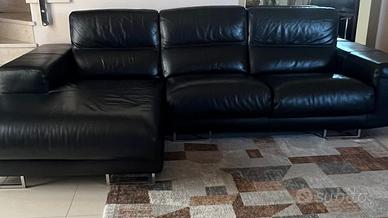 Caratteristiche principali: pelle nera, struttura solida e comoda, ampia seduta con penisola lato sinistro, piedini in acciaio cromato