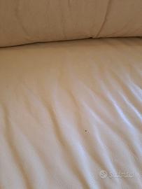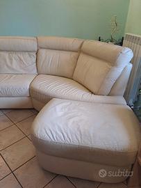 Divano Doimo angolare 4 posti in pelle color panna con pouf. 2.80 mt x 90 cm, piccoli segni di usura (evidenziati in foto). Ritiro e trasporto a carico dell'acquirente.