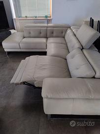 Vendo elegante divano angolare in pelle color grigio chiaro, in ottime condizioni, usato pochissimo. Design moderno e raffinato, perfetto per soggiorni di classe.