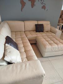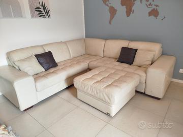 Vendo per cambio stile, divano angolare come nuovo, in vera pelle marca Eraclea Sofà con certificato di autenticità. Il divano è composto da 4 moduli ( 2 posti-2 posti-1 posto-1 pouf contenitore). È tenuto sempre foderato ed il pouf si può spostare a proprio piacimento.