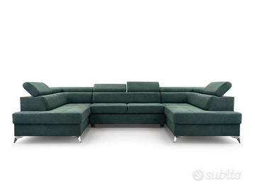Cerchi un divano panoramico dalla struttura robusta ed affidabile? I nostri divani, prodotti da aziende competenti e specializzate, sono pezzi realizzati ad hoc per soddisfare i tuoi gusti più personali. Questo divano angolare ad U è realizzato con materiali di prima qualità ed è costruito per resistere. La sua struttura è solida e i rivestimenti di alta qualità ne assicurano una resistenza eccezionale all’usura. Personalizzalo con il colore che preferisci e goditi il comfort di un divano creato su misura. Prodotto esclusivo, creato apposta per te. Sottolineiamo che il rivestimento della funzione letto che fuoriesce può essere di colore diverso da quello evidenziato in foto e comunque non è in tinta ed è differente dalla combinazione di colore del divano che si sceglie.