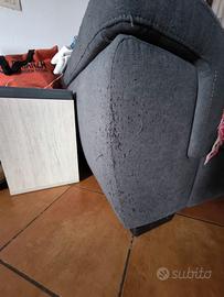 Vendo divano angolare (Mondo Convenienza) color antracite, estremamente pratico grazie alla funzione letto matrimoniale a estrazione e all'ampio vano contenitore sotto la penisola. Il divano è strutturalmente perfetto e i poggiatesta sono tutti reclinabili e funzionanti; segnalo però graffi e sfilacciature causati dal gatto sugli angoli esterni e sul bracciolo (come da foto), difetti puramente estetici che non ne compromettono l'uso e sono facilmente copribili. Prezzo 600€, ritiro a carico dell'acquirente