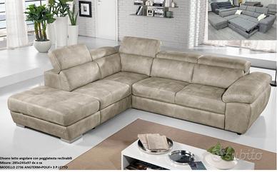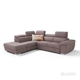 DIVANO ANGOLARE CON PENISOLA DX O SX, 5 POSTI CON CARRELLO LETTO ESTRAIBILE,POUF TERMINALE A CONTENITORE +