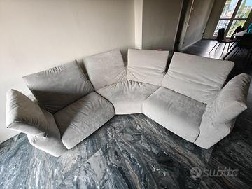 Vendo divano angolare in tessuto con seduta maxi, marca Diotti, colore grigio chiaro.