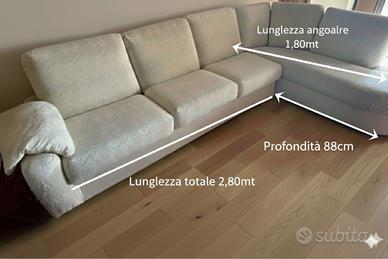 Divano angolare composto da due pezzi , color panna con fantasia nel tessuto visibile in foto ; disponibile subito per il ritiro .