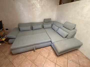 Divano/letto angolare con due appoggia testa comprati separatamente(70€ luno), con cassetto porta oggetti. Divano in buono stato.