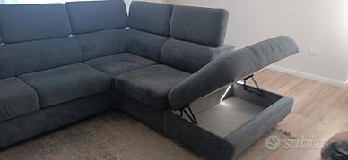 Divano angolare con pouf contenitore.