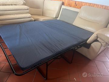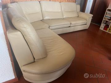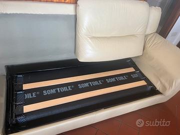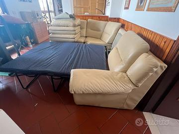 Vendo divano in pelle pieno fiore, con integrato letto matrimoniale e rete a doghe, sfoderabile, colore avorio/ beige. Tenuto bene. Misure circa mt 2,20 per mt3,30 ritiro da parte dell'acquirente, non spedisco.