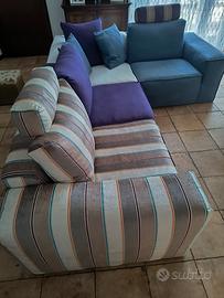 Come da oggetto vendo divano modulabile ,ogni seduta e separabile dalle altre . il divano consente di creare due divani separati a due e tre posto o una poltrona ed un divano a quattro posti.In alternativa divano angolare tre posti ed una poltrona o unico pezzo divano angolare. Il divano così come in foto misura 280 cm per 200 cm. Ogni componente misura 100 cm per 100 cm . La seduta viola 100 cm per 74 cm. Vendita anche a pezzi frazionati ( es:solo divano due postii ) se interessati.Il divano è in tessuto e completamente sfoderabile. Prezzo trattabile,preferibile ritiro in loco dall'interessato.