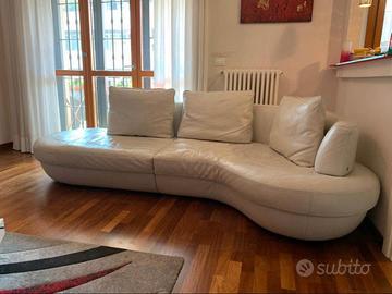 Divano angolare in pelle bianca 5 posti Natuzzi mod. Rondo’ Mmisure 281x 141 Ampie sedute; la parte curva dello schienale e’ monile e puo’ essere spostata per la massima comodita’. Prezzo d’acquisto 3.780€