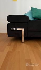 Vendo divano angolare nero. Di design con bracciolo a giorno. Sedute regolabili per maggiore confort.
