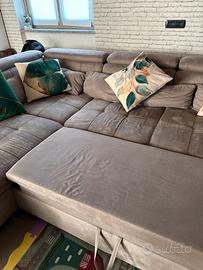 Divano angolare con parte estraibile. Il divano ha 2 anni ed è in buone condizioni. Misure: 3,10x2,60 Profondità 1,10. Poggiatesta regolabili Prezzo 400€ Grazie