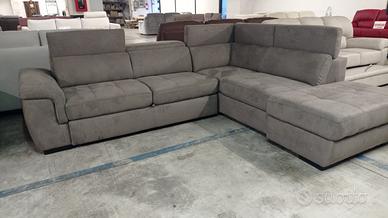 Divano angolare con letto estraibile, pouf contenitore. Tessuto antimacchia. Misura cm 273x cm 236. Disponibile in diversi colori.
