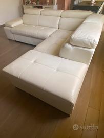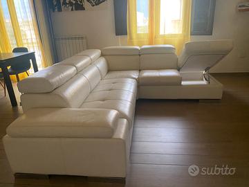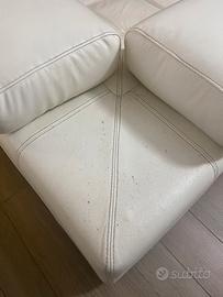 Vendo divano in vera pelle bianca, produzione italiana, comodo e imbottito, con braccioli.