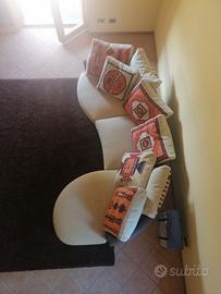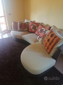 Divano angolare di Paolo Colombo misure 270 x 160 divisibile con struttura in pelle color cacao con cuscini in tessuto sfoderabile con disegni geometrici come nuovo mai usato , ritiro in loco.