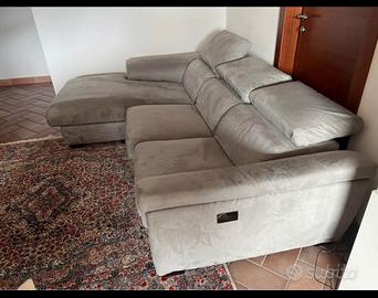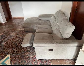 divano angolare con poggiatesta regolabili, seduta elettrica con alzagambe e schienale mobile, tessuto antimacchia