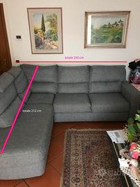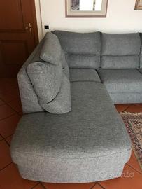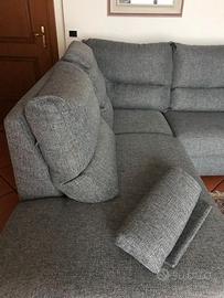 Divano angolare PoltroneSofa mod. CORNETO, realizzato in un tessuto grigio (sulla bolla leggo rivestimento ELICRISO A1ILC-D01/850). Completamente sfoderabile e lavabile. Altezza del divano 45 cm, della spalliera in tot 86 cm, vedi le misure sulla foto (consulta il loro sito per i dettagli).