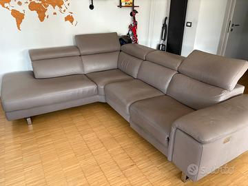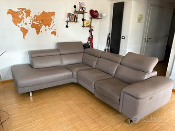 Vendo divano angolare originale PoltroneSofà in vera pelle color tortora, con chaise longue sinistra e seduta relax elettrica.