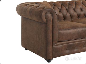 Vendesi come da titolo divano angolare Chesterfield reversibile in microfibra invecchiata marrone. Nessuna macchia, nessun graffio, tessuto impeccabile.