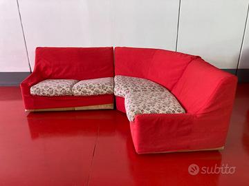 Divano in pelle, angolare, 3 pezzi, con letto 3/4 con materasso nuovo mai usato. Foderato in cotone lavabile e sfoderabile in tinta coordinata.