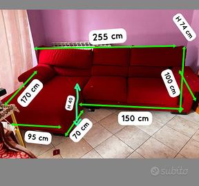 Vendo divano angolare rosso con chaise longue, molto comodo e spazioso, ideale per soggiorno o taverna. 📏 Dimensioni: •Lunghezza totale: circa 255 cm •Profondità seduta: circa 100 cm •Chaise longue: 170 x 95 cm •Altezza schienale: circa 74 cm 🛠️ Condizioni: •Struttura solida •Sedute comode •Presenta alcuni piccoli segni/usura visibili (come da foto), ma ancora perfettamente utilizzabile ✔️ Ottimo per chi cerca un divano grande a prezzo contenuto ✔️ Ideale anche per casa vacanze, seconda casa o studenti 📍 Ritiro a mano (no spedizione)