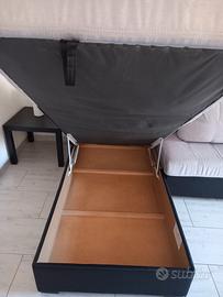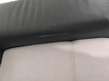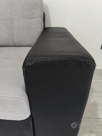 divano angolare 2 posti più penisola a sinistra,trasformabile in letto.Screpolatura si presenta su un bracciolo nella parte in ecopelle