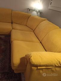 Dimensioni 280cm x 280cm. Profondità: 90cm. Altezza seduta 40cm. Tessuto: alcantara. Colore: giallo senape. Schienale reclinabile (sommità). Seduta allungabile di 20cm. Usato: circa 20 anni.