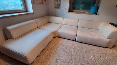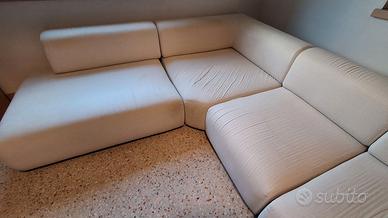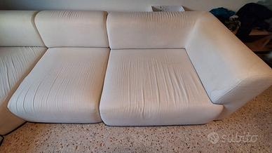 Divano angolare marca Sancal modello Duo dim. 300 x 240 cm profondità 105 cm in tessuto bianco panna. Il divano è modulare. Il pezzo angolare ha il rivestimento danneggiato. Ritiro a cura dell'acquirente