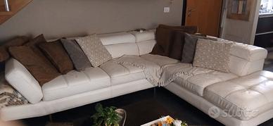 Vendo divano vera pelle bianco. Misure 2,95x2,20 presenta una rottura della pelle nella zona angolare che si può coprire con un telo o coperta,il resto è in buono stato. Poggiatesta tutti reclinabili ,piedini a staffa in acciaio inossidabile. Non spedisco e solo soldi in contanti .