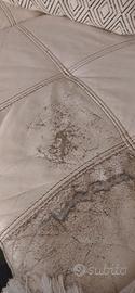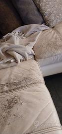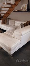 Divano angolare 2,92x2.20 in vera pelle bianca rovinato sulle sedute centrali Piedi a staffa in acciaio inox. Svendo