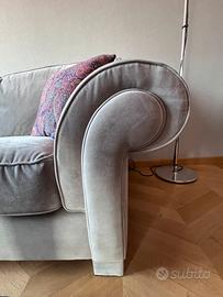 Splendido divano artigianale in velluto imbottito in piuma d’oca senza alcun segno di usura.