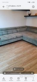 Vendo divano angolare causa trasloco in casa più piccola, colore verde salvia chiaro. Ha 5 mesi di vita, comprato ad ottobre 2024, davvero come nuovo perché usato sempre con copri divano, il tessuto è molto morbido e confortevole, vellutato.