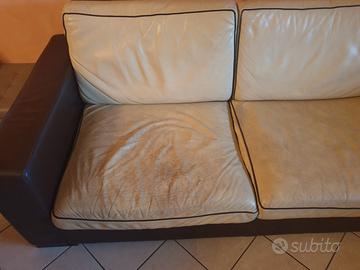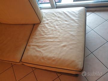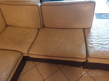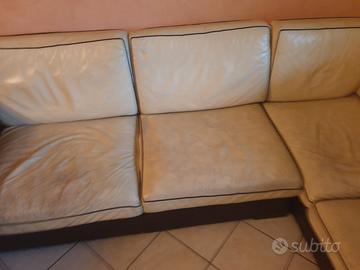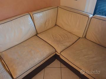 Divano angolare in vera pelle morbidissima formato scomponibile in tre unita : Dim. Totale: 280x280x100px85h cm 1° unità: 180'x100x85h cm 2° unità: 200x100x85h cm 3° unità: 100x80x40h cm pouf Struttura in ottime condizioni. Cuscini seduta segnati dal tempo. Cuscini poggiaschiena ancora in buone condizioni. Ritiro obbligatorio a cura acquirente
