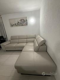 Divano ad angolo in vera pelle , allarga e diventa letto come nuovo 300x200
