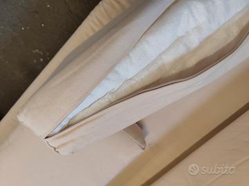 Vendo divano angolare in due sezioni, misure totali 270x200 profondità seduta 88, con fodera beige in tessuto spesso di cotone completamente sfoderabile. Segni di usura e zone consumate come da foto. Prezzo di realizzo. Troveremo sicuramente un accordo.