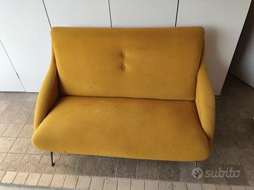 Divani per salotto anni 60, non presenta etichette o riferimenti del produttore. Confermo che il colore è omogeneo e uguale su tutti e 3 gli elementi. Una poltrona è stata parzialmente restaurata senza danneggiare l'integrità della struttura. Attualmente sono comunque da ripulire e rimuovere alcuni leggeri piccoli aloni su una delle sedute e lucidare i piedi in ottone. Hanno un ottimo design da modernariato. Non ci sono strappi, smagliature, scuciture o altri danni al tessuto. Contattare su wathsapp o messaggio prima di chiamare, grazie