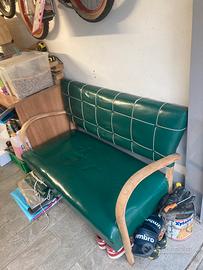 Divano anni 70, 80, colore verde, pelle plastica e legno, misure larghezza 120, altezza 80, profondità 67, solo ritiro