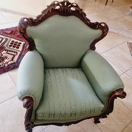divano 7 posti angolare , composto da 3 sedute e 2 da 2 posti con 2 poltrone singole con struttura in vero legno noce e sedute in tessuto verde condizioni pari al nuovo vendesi in blocco No perditempo contattare solo se interessato